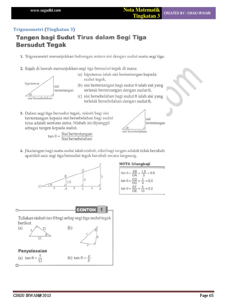 Bab 15 Matematik Tingkatan 3 Trigonometri Pdf