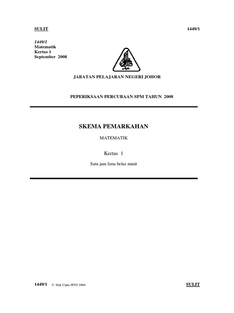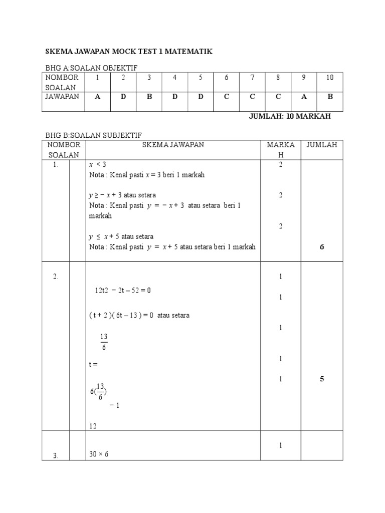 Skema Pemarkahan Mocktest 1 Matematik Pdf