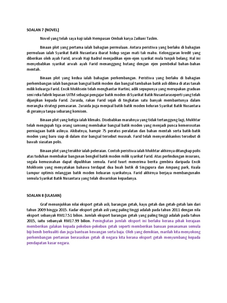 Persamaan yang terdapat dalam latar masyarakat dalam kedua-dua novel ialah masyarakat yang mengamalkan sikap dan cara hidup yang bersopan santun. 7 markah Berdasarkan dua buah novel yang anda pelajari huraikan konflik yang terdapat dalam novel tersebut dan cara watak utama menyelesaikannya. Teknik Menjawab Soalan KBAT Novel Tingkatan 4 SPM 20162017.
