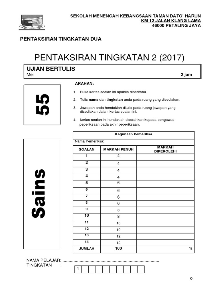 Peperiksaan Pertengahan Tahun 22017 Sains Tingkatan 2 Pdf