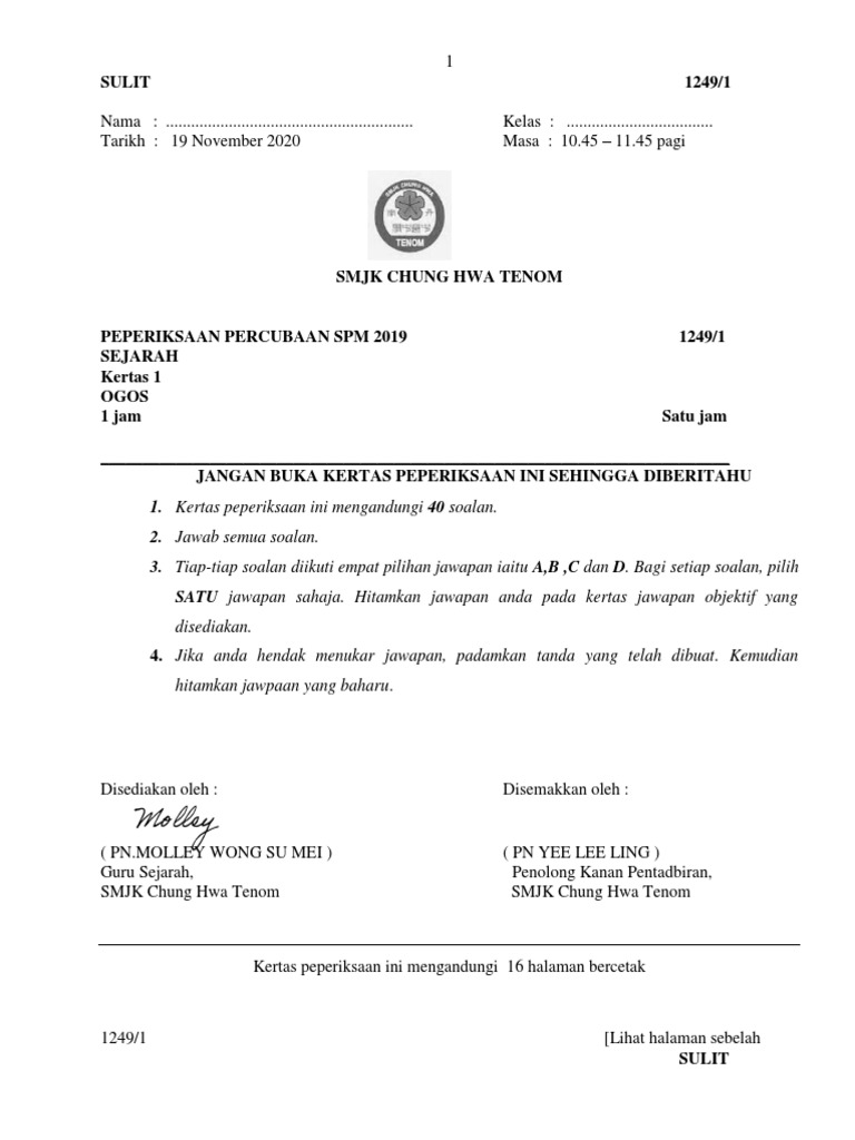 Soalan percubaan spm 2020 sejarah kertas 1. Perkongsian kali ini melibatkan peperiksaan Sijil Pelajaran Malaysia SPM untuk mata pelajaran sejarah. We provide SPM Trial Paper Questions with answers and Soalan Percubaan SPM from 2011-2018. SPM atau Sijil Pelajaran Malaysia merupakan satu peperiksaan awam yang sangat penting kepada pelajar.
