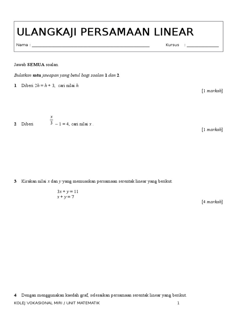 Ulangkaji Persamaan Linear Sosial Pdf