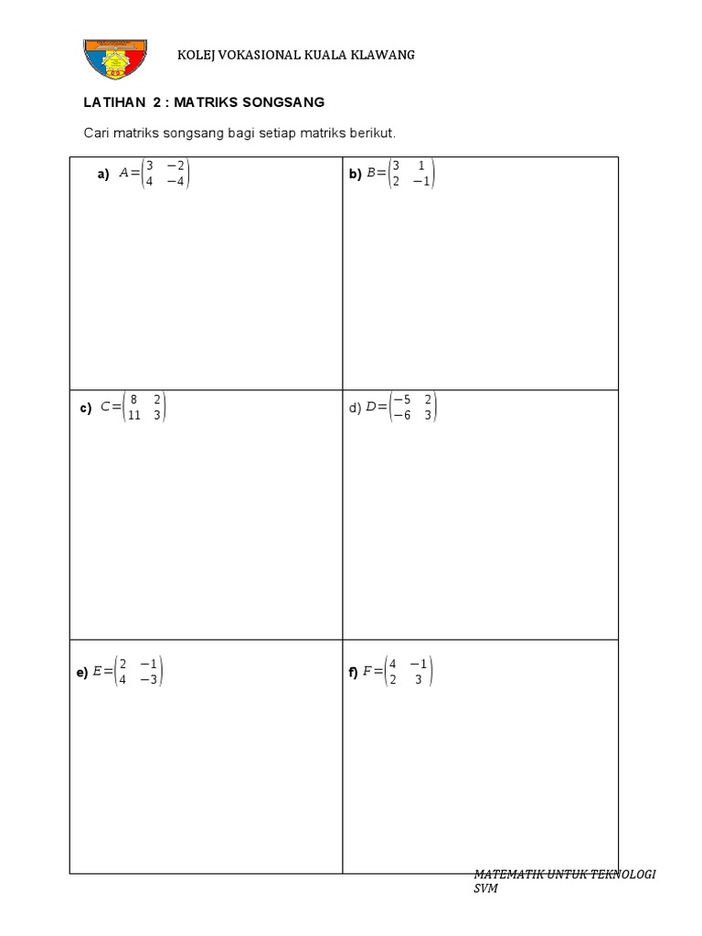 Latihan 1 Matrik Svm Songsang Pdf