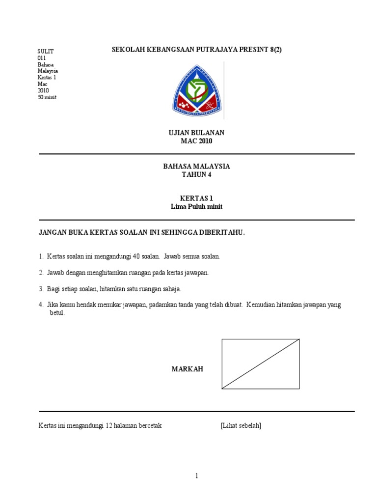 Ujian Bulan 1 Tahun 4 Kertas 1 Pdf