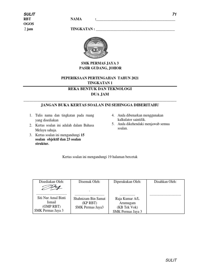 Soalan peperiksaan rbt tingkatan satu. Kertas soalan peperiksaan ujian pertengahan tahun akhir tahun kbat karangan novel buku teks tingkatan 1 tahun 2021. Soalan Objektif Sains Tingkatan 1 2021-11-09T193400-0800 Rating.
