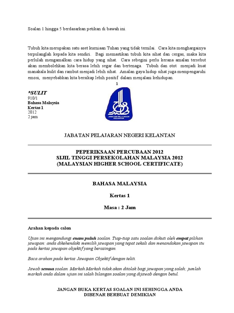 Soalan Bahasa Melayu Kertas 1 Percubaan Stpm 2012 Kelantan Pdf