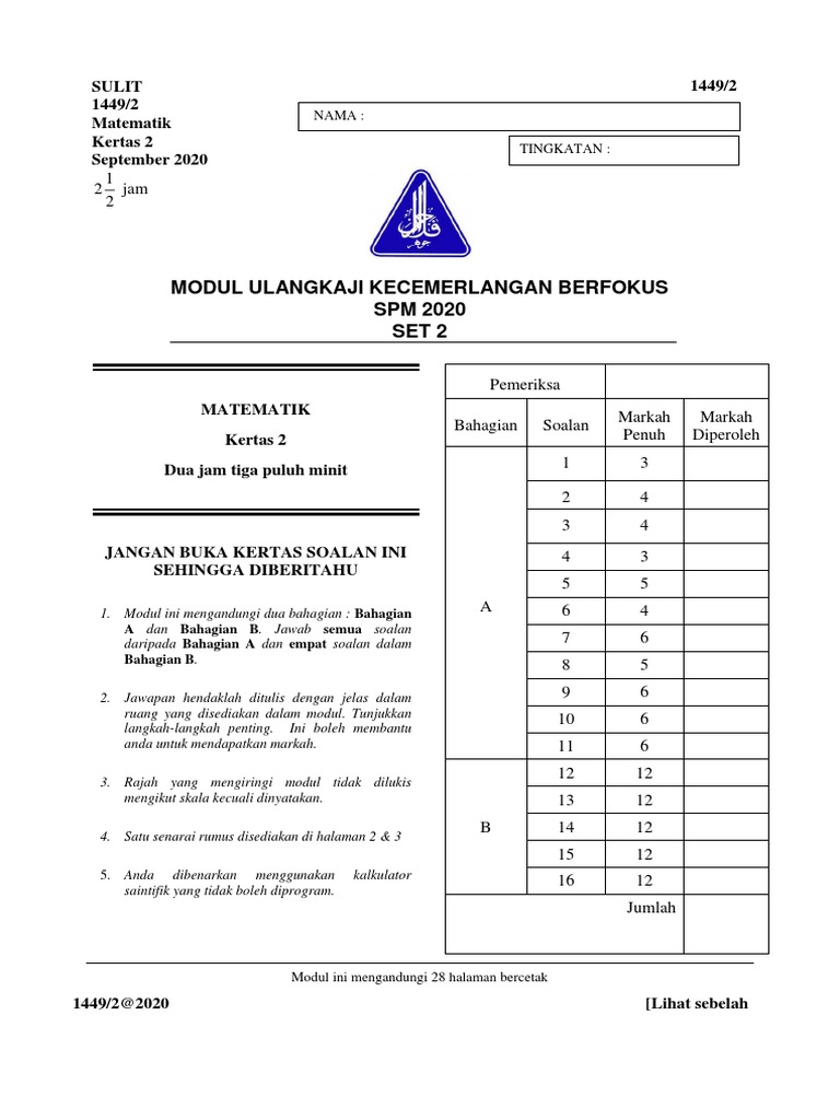 Berikut adalah koleksi kertas soalan dan skema jawapan bagi peperiksaan percubaan SPM tahun 2019 serta tahun 2020 untuk rujukan para pelajar. Feb 22 2019 kole. Calon wajib menduduki semua.