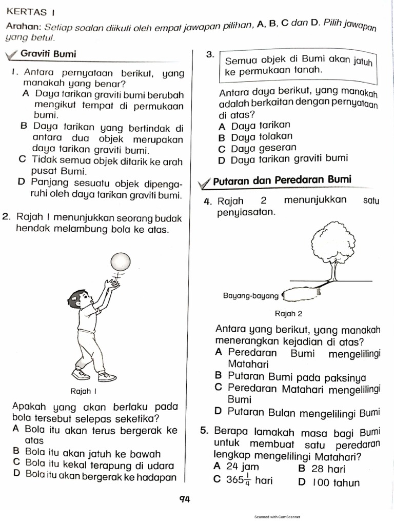 A arah pusingan jam b arah lawan jam 7 Putaran lengkap Bumi pada paksinya mengambil masa selama a 1 tahun b 1 bulan c 1 hari d 1 malam 8 Peredaran lengkap Bumi mengelilingi Matahari mengambil masa a 365 hari b 300 hari c 345 hari d 365 14 hari 9 Putaran Bumi atas pada paksinya menyebabkan kejadian berikut KECUALI a Siang dan. Pelajar dan guru dapat memanfaatkan penggunaan ICT bagi memberikan impak kualiti yang baik dalam pembelajaran pada masa kini. Soalan Latih Tubi Sains Tahun 4 ini adalah koleksi soalan yang telah disumbangkan oleh beberapa guru Sains di seluruh Malaysia.