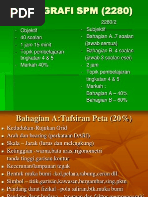 Pilih satu jawapan yang paling tepat bagi setiap soalan soalan 1 hingga 10 berdasarkan peta topo di. Bank Soalan SPM Geografi adalah antara himpunan soalan-soalan yang berjaya kami sediakan untuk menjadi panduan dan rujukan kepada guru ibubapa dan pelajar. Bahagian a objektif mengandungi 20 soalan 20 markah bahagian b 4 soalan objektif sebanyak 40 markah dan bahagian c jawab 2.