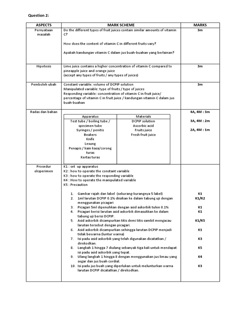Skema Question 2 Percubaan Biologi Pdf Vitamin C Jus