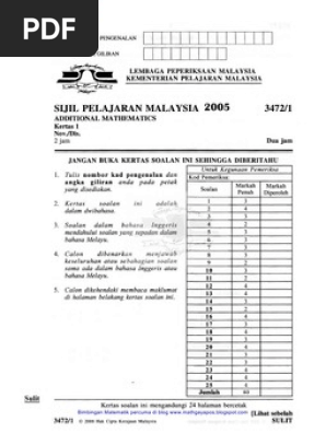Add Maths Sebenar Spm 2005 Pdf Standardized Tests Student Assessment And Evaluation