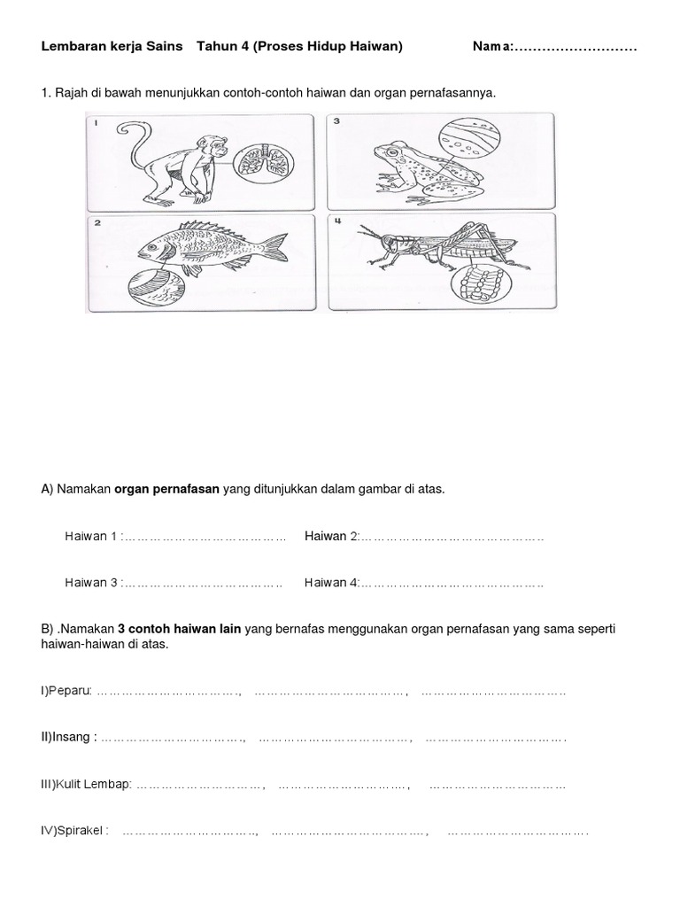 Sains Tahun 4 Pernafasan Manusia Worksheet. 1 Dec 31 2009 801 PM Geetha Rao ĉ PKSR1Thn62008MZdoc 196k v. Latih tubi ini mengandungi 30 soalan.