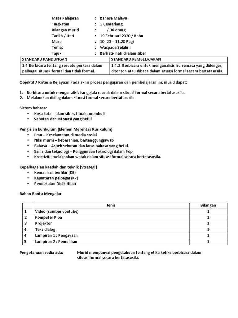 Rancangan Pengajaran Harian Bahasa Malaysia Tahun 2 Pdf