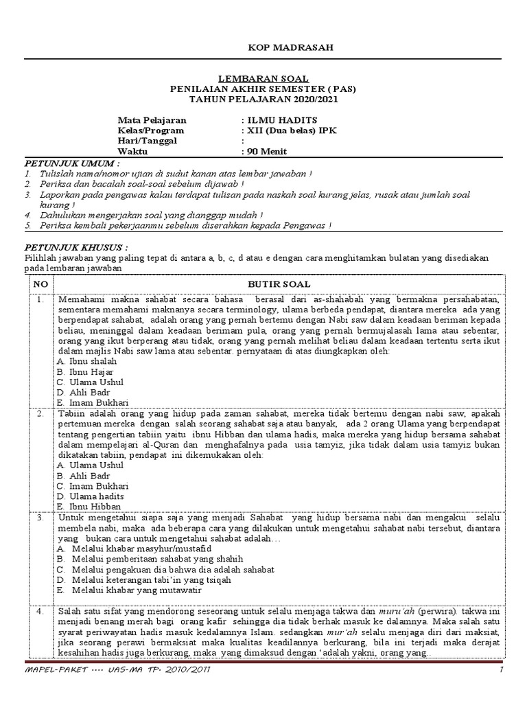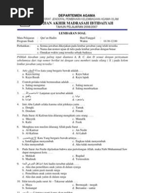 Soal Ujian Akhir Mi Qur An Hadits Pdf