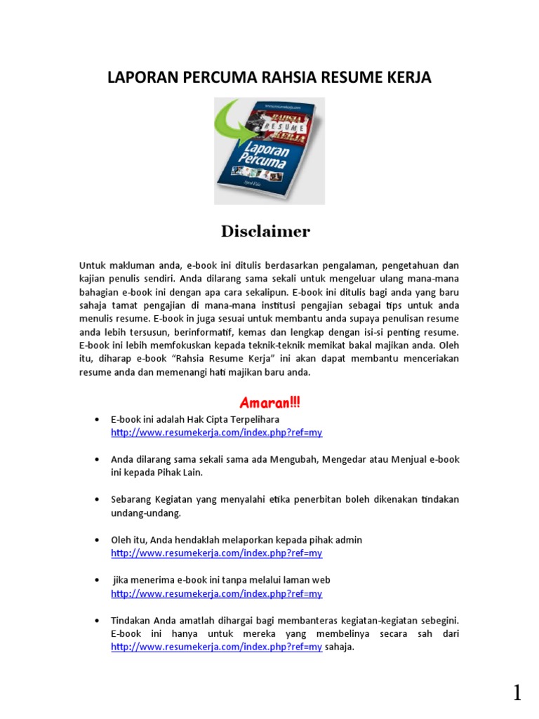 Laporan Percuma Rahsia Resume Kerja Pdf