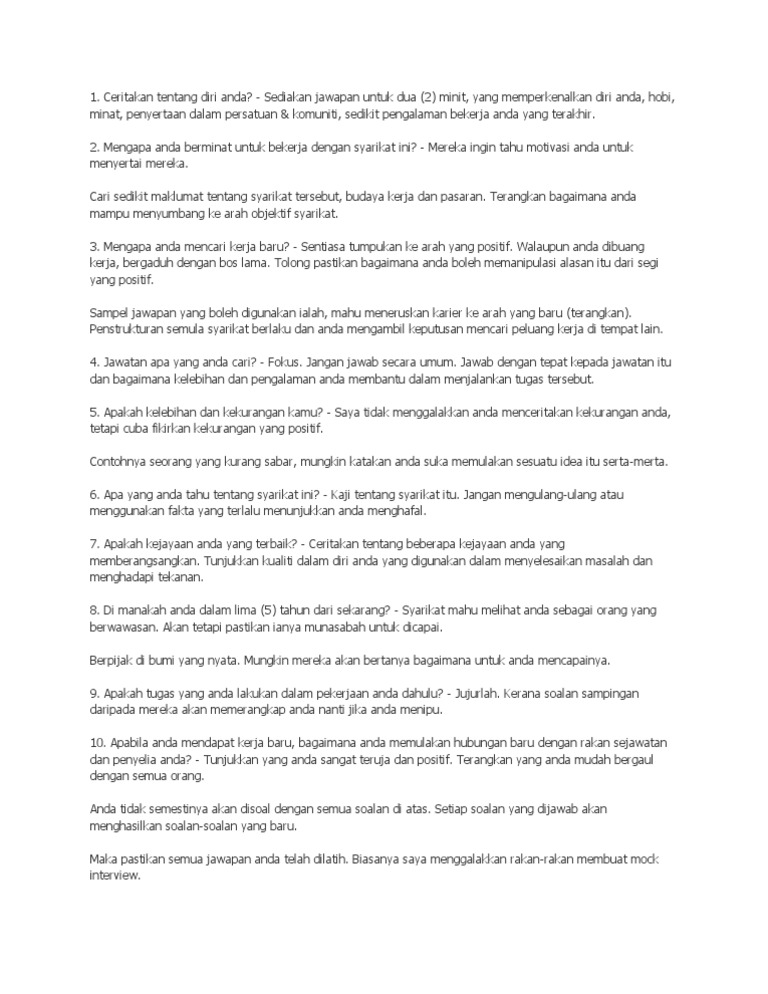 Soalan lazim interview spanish soalan lazim interview spa manager soalan lazim interview spa questions soalan lazim interview space soalan lazim interview spaces soalan lazim interview spartan soalan lazim interview spark soalan lazim interview spanish translation soalan lazim interview spanish movie soalan interview soalan interview dan jawapan soalan interview. Jangan hafal tapi cuba fahamkan konteks soalan. In Soalan Temuduga Tips Hadapi Temuduga Tips Kerjaya Tags Cara Memperkenalkan Diri Semasa Temuduga cara memperkenalkan diri semasa temuduga dalam bahasa inggeris interview question and answer pakaian untuk temuduga soalan temuduga kenaikan pangkat polis soalan temuduga kilang tips temuduga kerajaan August 24 2017 Syed Shaff.