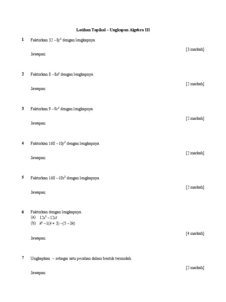 Latihan Topikal Ungkapan Algebra Iii Pdf