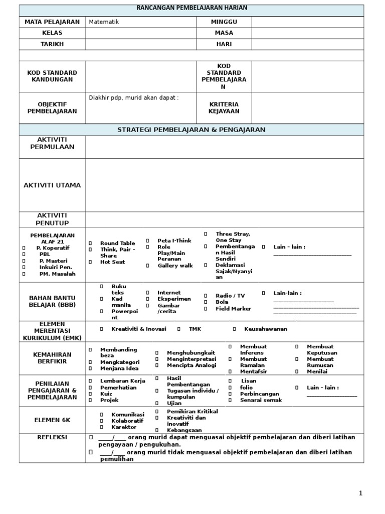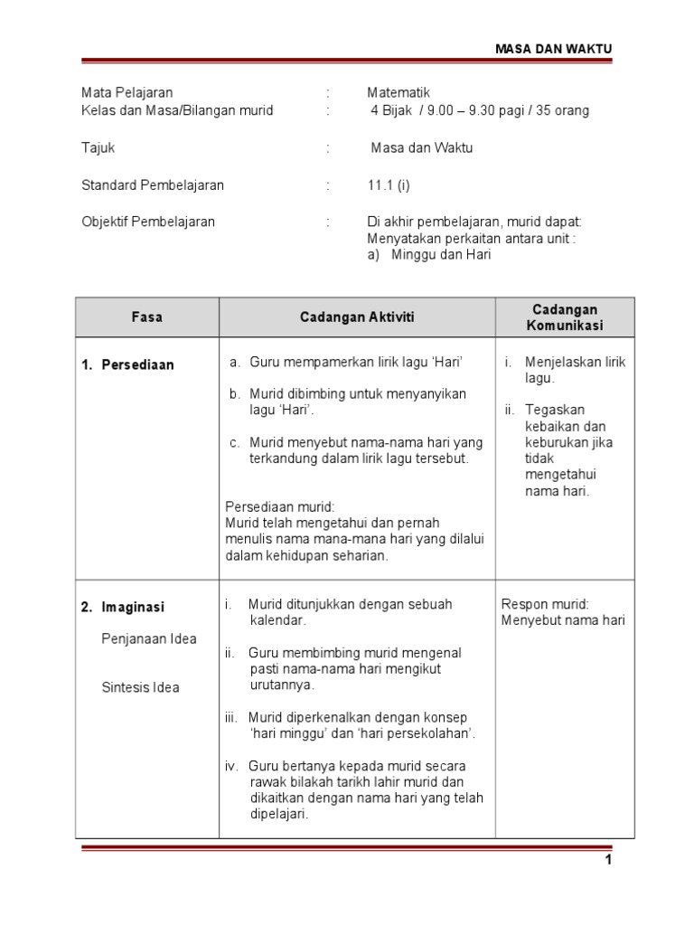 Contoh Rph Kssr Matematik Tahun 4 Masa Waktu Pdf