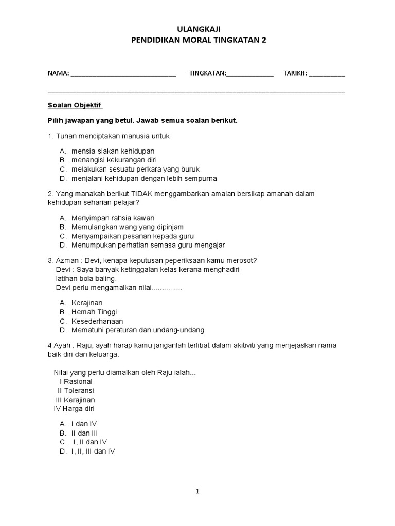 Ujian Moral Tingkatan 2 Awal Pdf