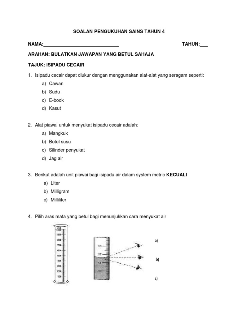 Soalan Sains Tahun 4 Pengukuran Viral Blog L. Soalan Spa Pembantu Awam Gred H11. Kamu dikehendaki menjawab semuasoalan dalam kedua-dua.