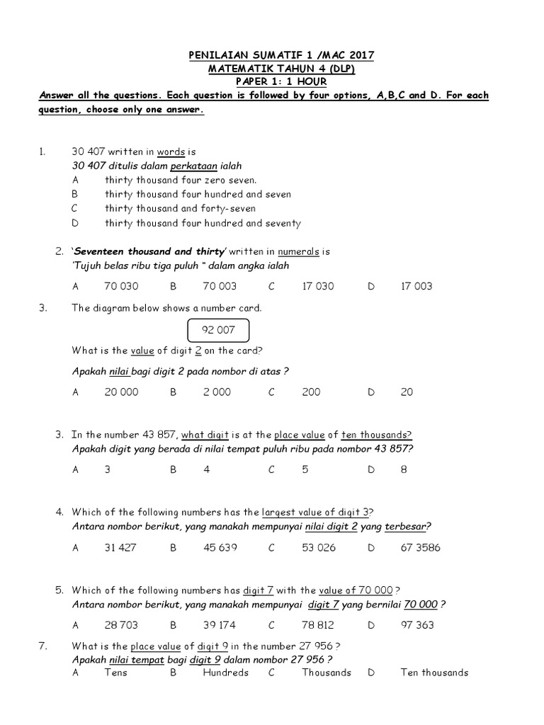 Koleksi Soalan Peperiksaan Akhir Tahun PAT Tahun 4 Jawapan K. Contoh Soalan Matematik Dlp Tahun 4 - Aksisbu. Soalan Matematik Tahun 4 Dlp 2020-11-27T030000.