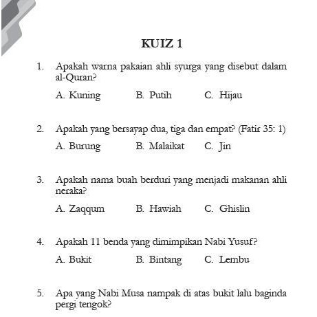 Contoh Soalan Al-quran Dan As-sunnah Spm. Soalan Matematik Tahun 5. Saya ingin berkongsi 7 soalan teka-teki yang boleh dibuat kepada mereka.
