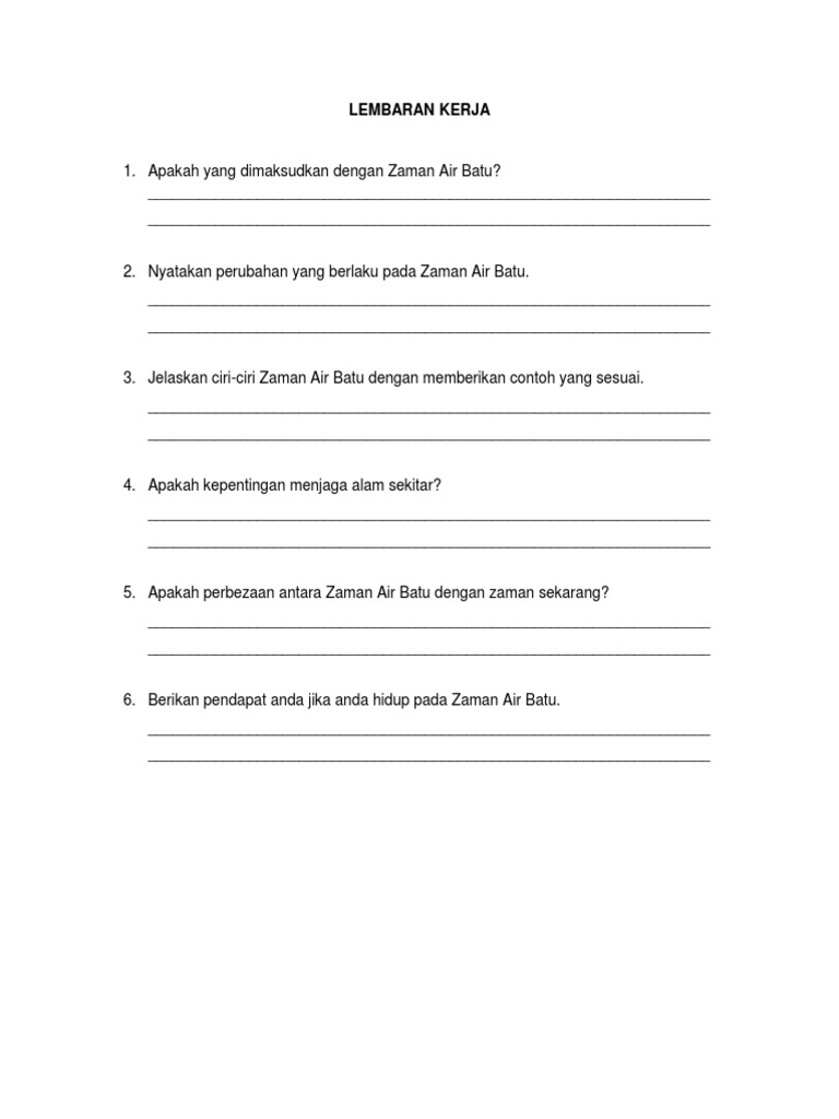 Ejercicio De Sejarah Tahun 4 Zaman Air Batu