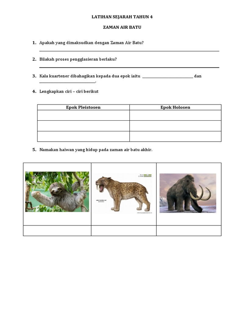 Latihan Sejarah Tahun 4 Kenali Zaman Air Batu Pdf