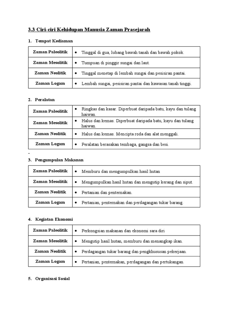 Ejercicio De Sejarah Tingkatan 1 Bab 3 3 3 Ciri Ciri Kehidupan Zaman Prasejarah