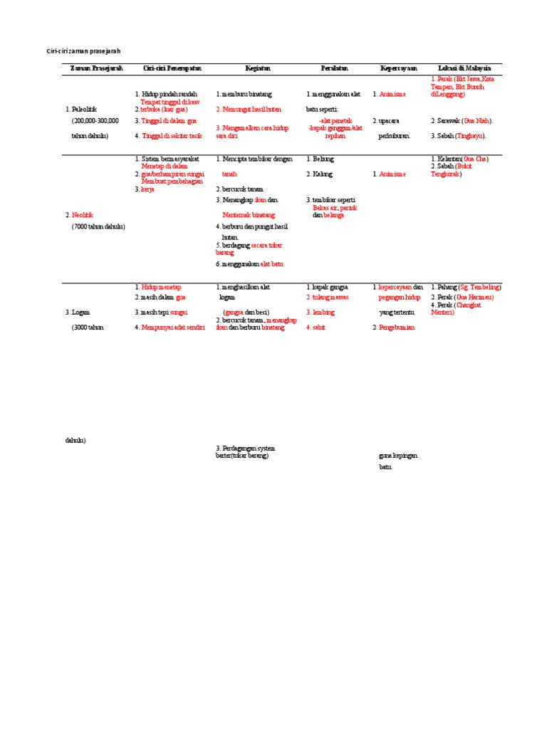 Soalan zaman prasejarah tingkatan 1. Menyatakan perkembangan Zaman Prasejarah di Malaysia iaitu Zaman Paleolitik Zaman Neolitik dan Zaman Logam 2. Sejarah tingkatan 1 bab 7 by shafwanazam91. - zaman batu menggunakan batu dalam kehidupan.