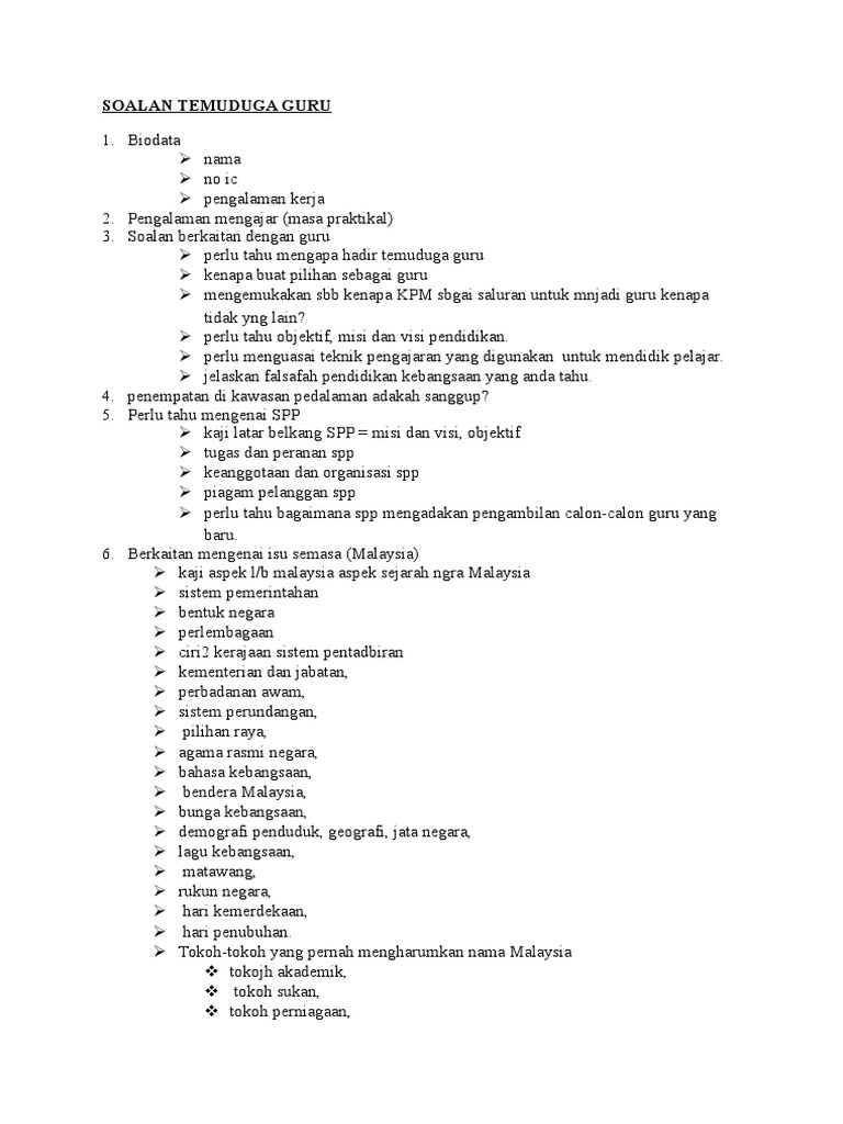 Soalan Dan Jawapan Temuduga Guru Tadika Viral Blog H