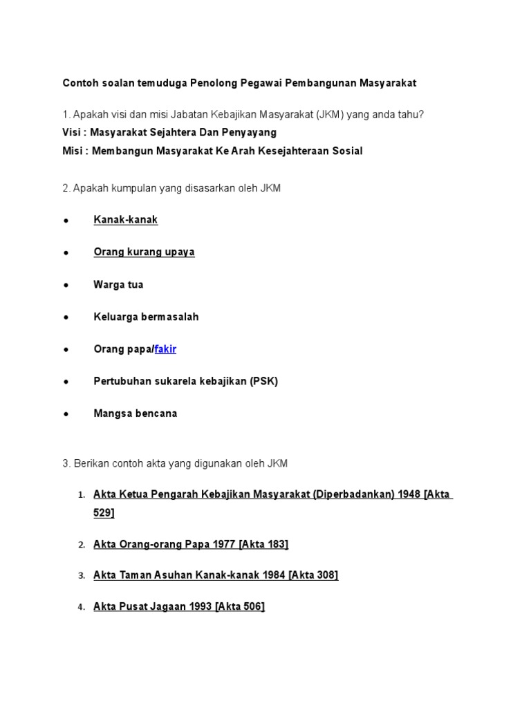 Contoh Soalan Temuduga Penolong Pegawai Pembangunan Masyarakat Pdf