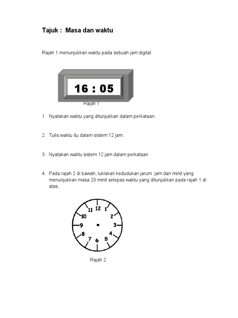 Masa Dan Waktu Standard Kandungan. A Pukul 530 b Pukul 754 c Pukul 1155. Live worksheets Malay matematik Masa dan waktu Sistem 12 Jam dan Sistem 24 Jam.