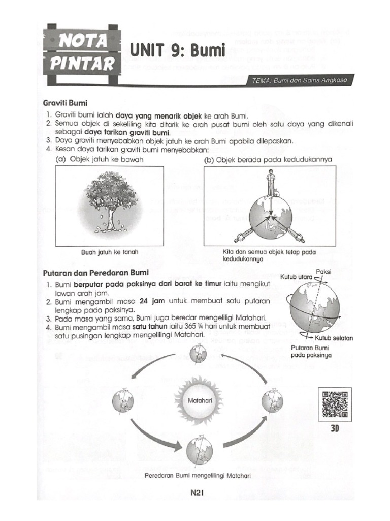 Kertas peperiksaan ini adalah dalam dwibahasa. Putaran dan Peredaran Bumi. Nota Sains Tuas KSSR Semakan Tahun 4.